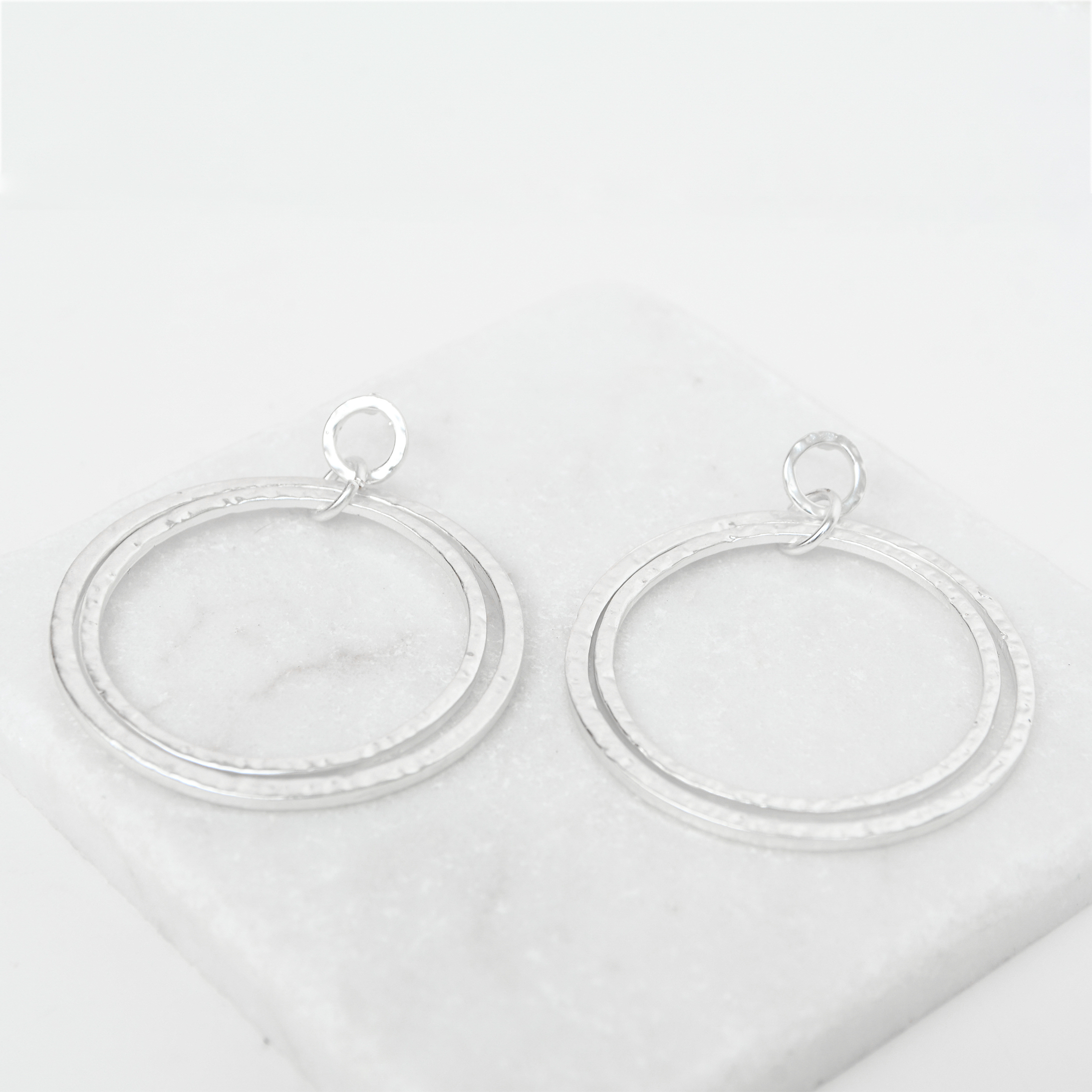 EARRINGS 2495-SLV-M HAMMERED DOUBLE RINGS EARRING