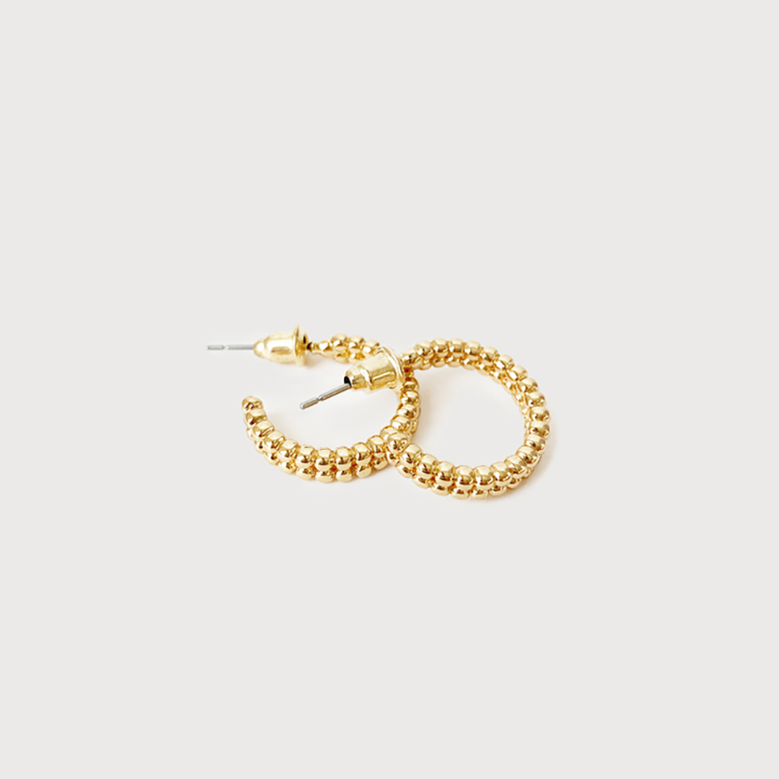 EARRINGS 2507-GLD SMALL METAL BEADED HOOPS