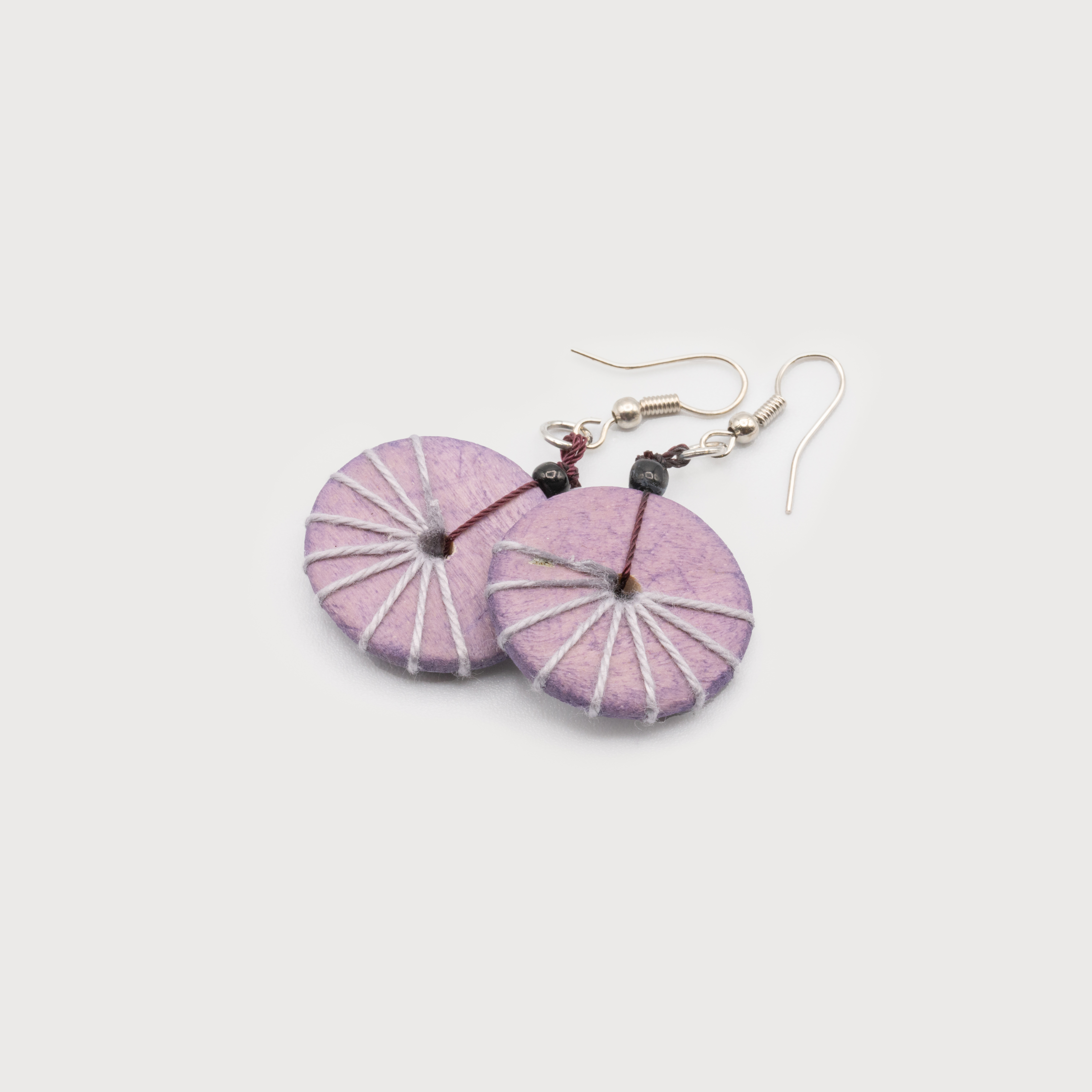 EARRINGS 2523-LAV WOOD BUTTON WITH CORDS EARRINGS