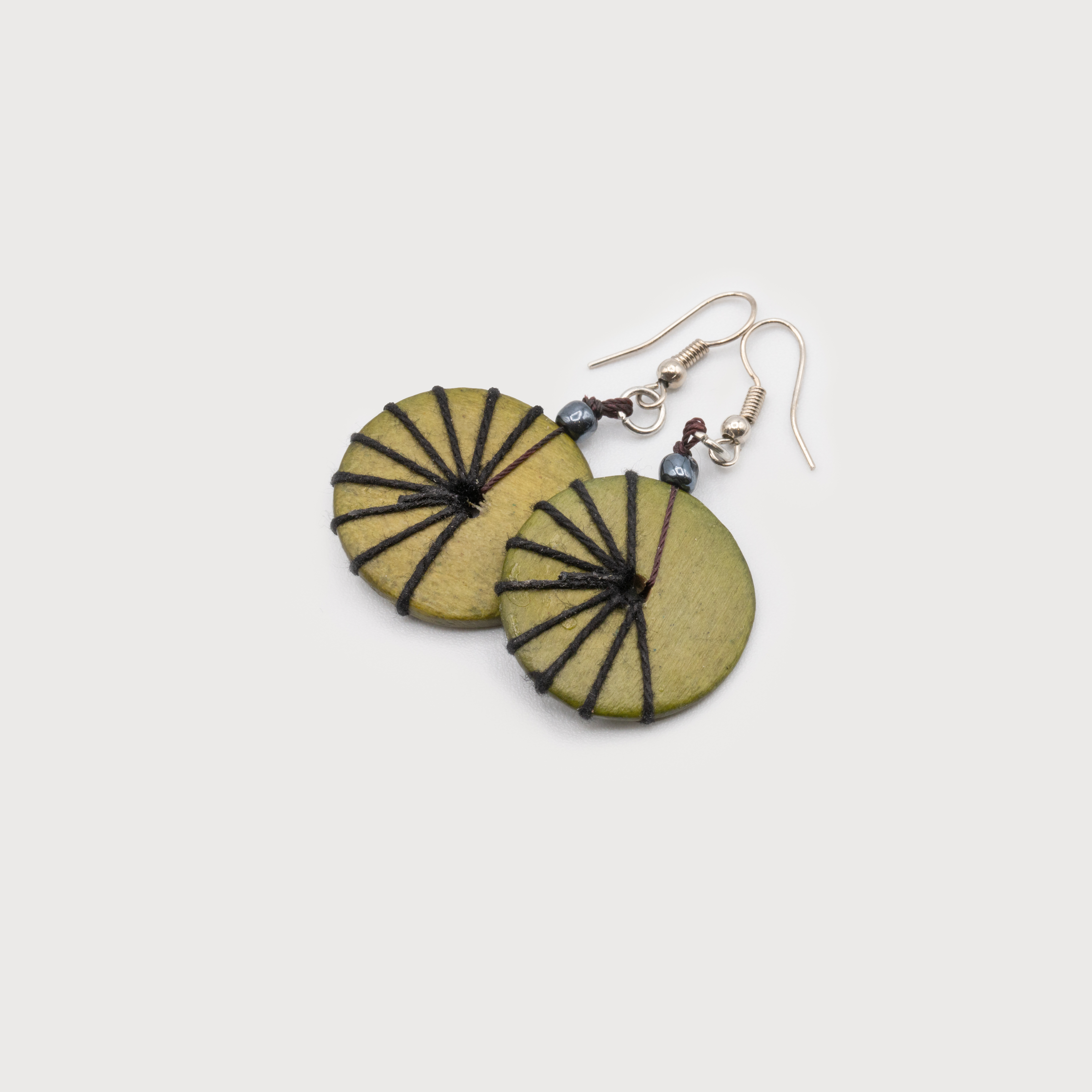 EARRINGS 2523-OLV WOOD BUTTON WITH CORDS EARRINGS