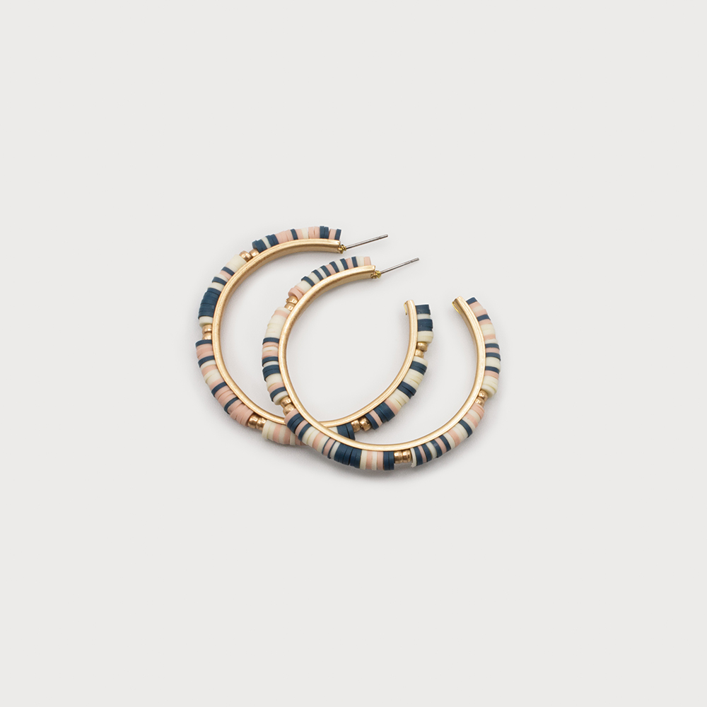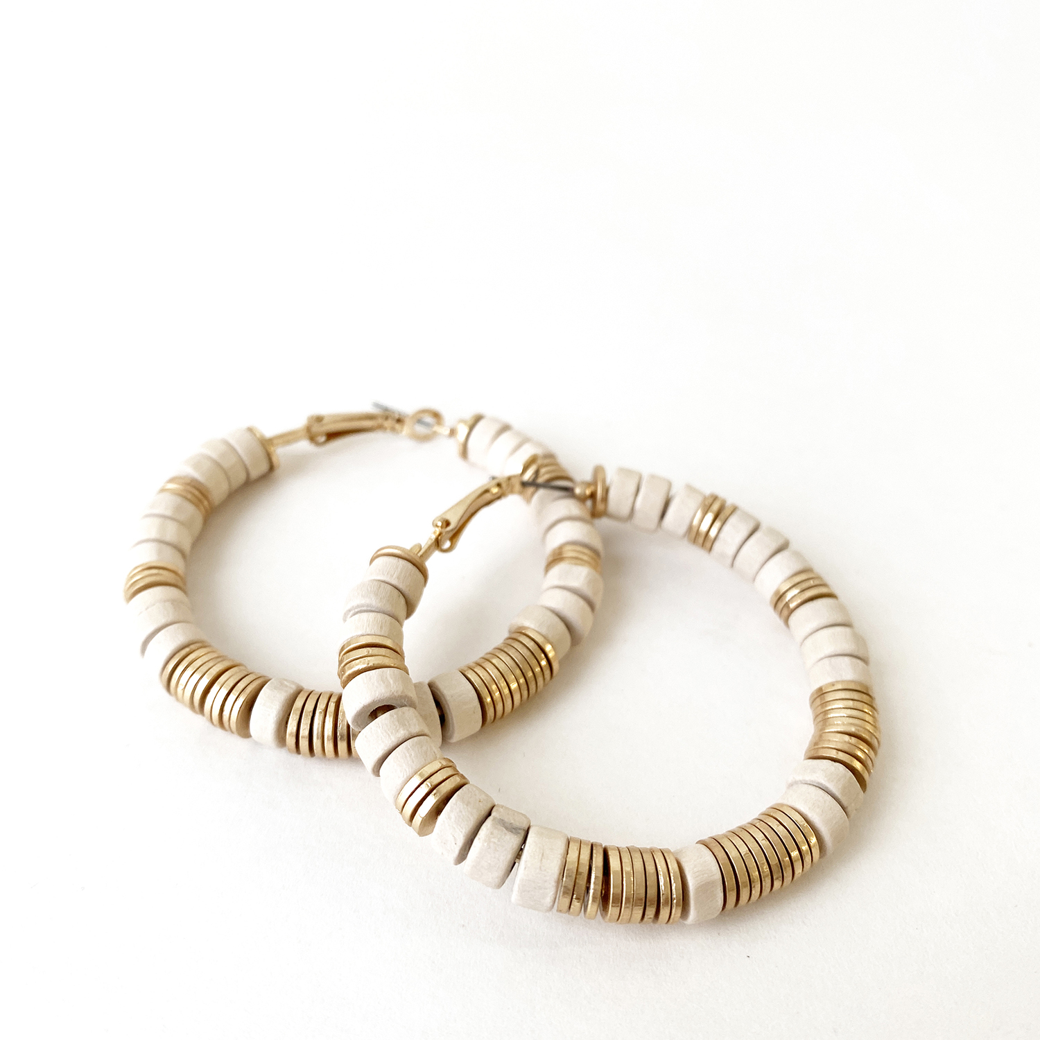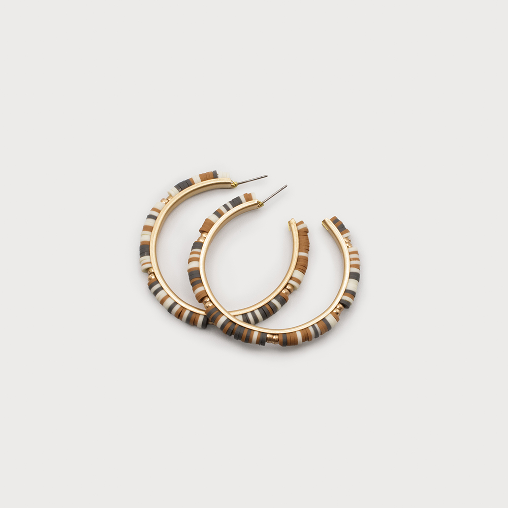 EARRINGS 2551-BGE-G WOOD & METAL BEADS HOOPS ON P