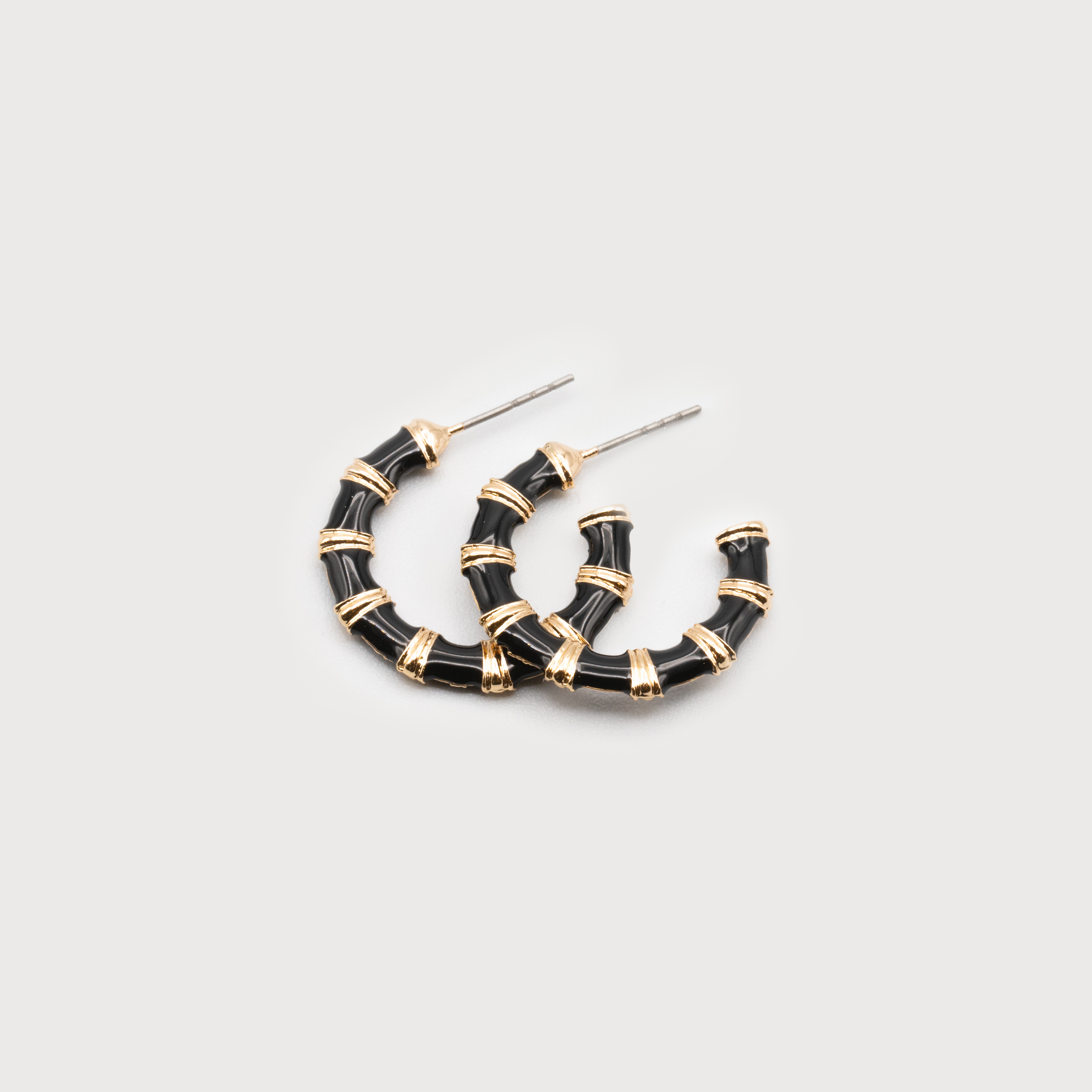 EARRINGS 2611-BLK-G ENEMAL HOOPS ON POSTS
