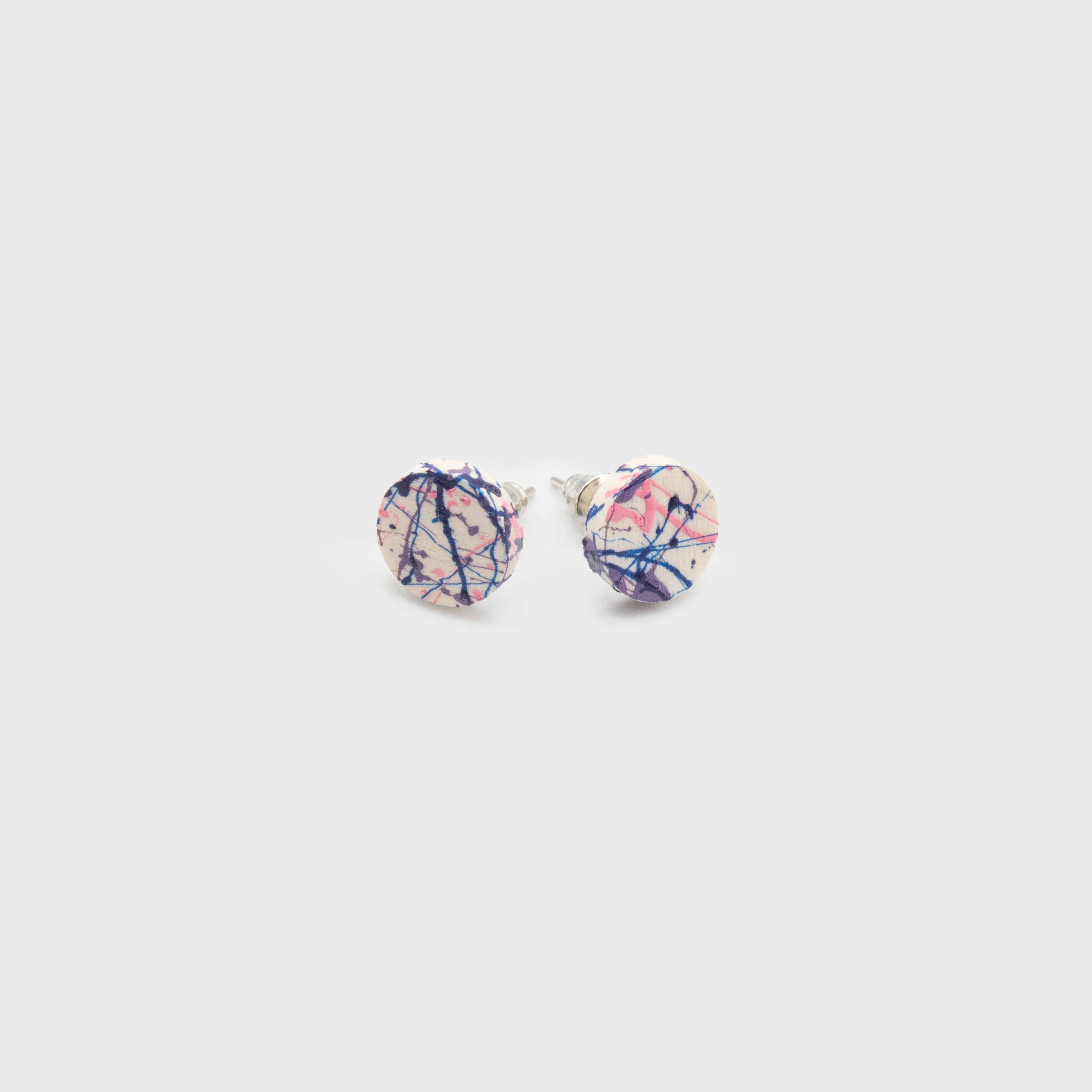 EARRINGS PH 2619-BER SMALL PAINTED WOOD BUTTON STU