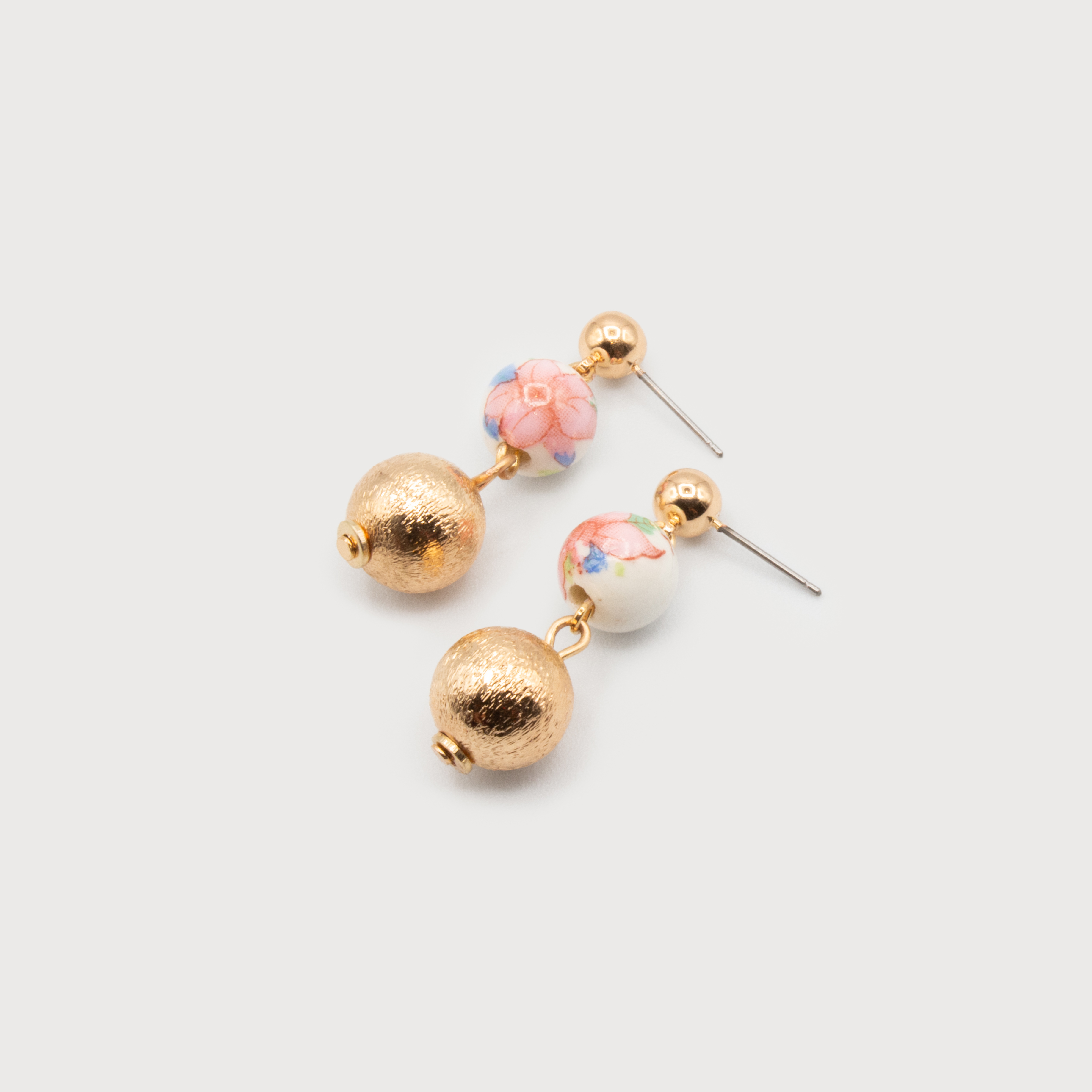 CERAMIC & TEXTURED METAL BEADS EARRINGS ON POSTS