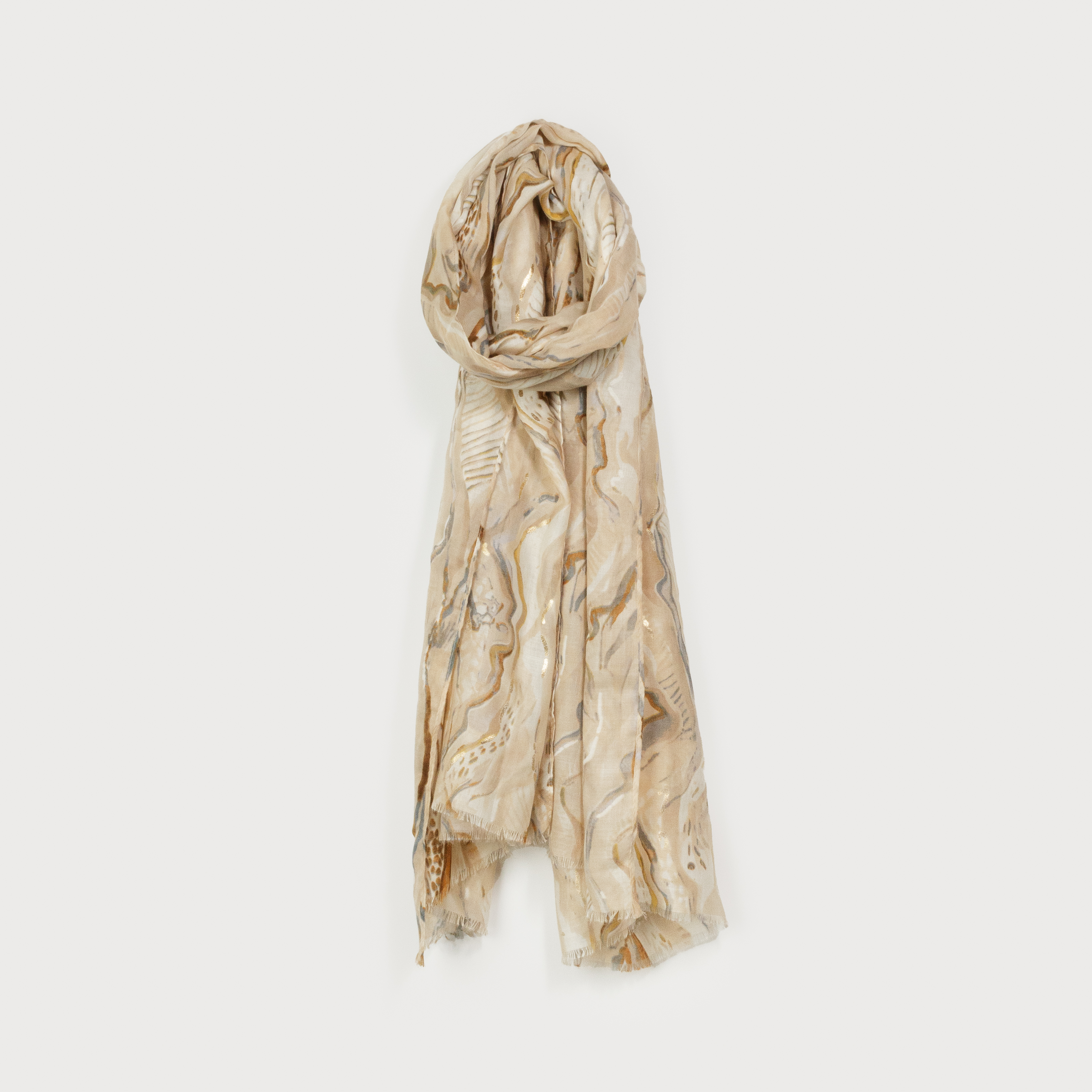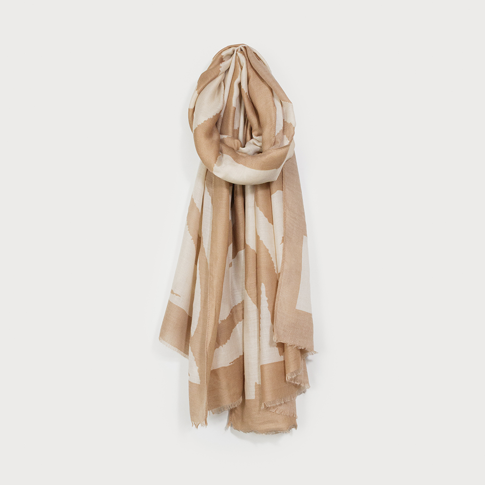 LIGHTWEIGHT SCARF WITH SOFT BEIGE PRINTS