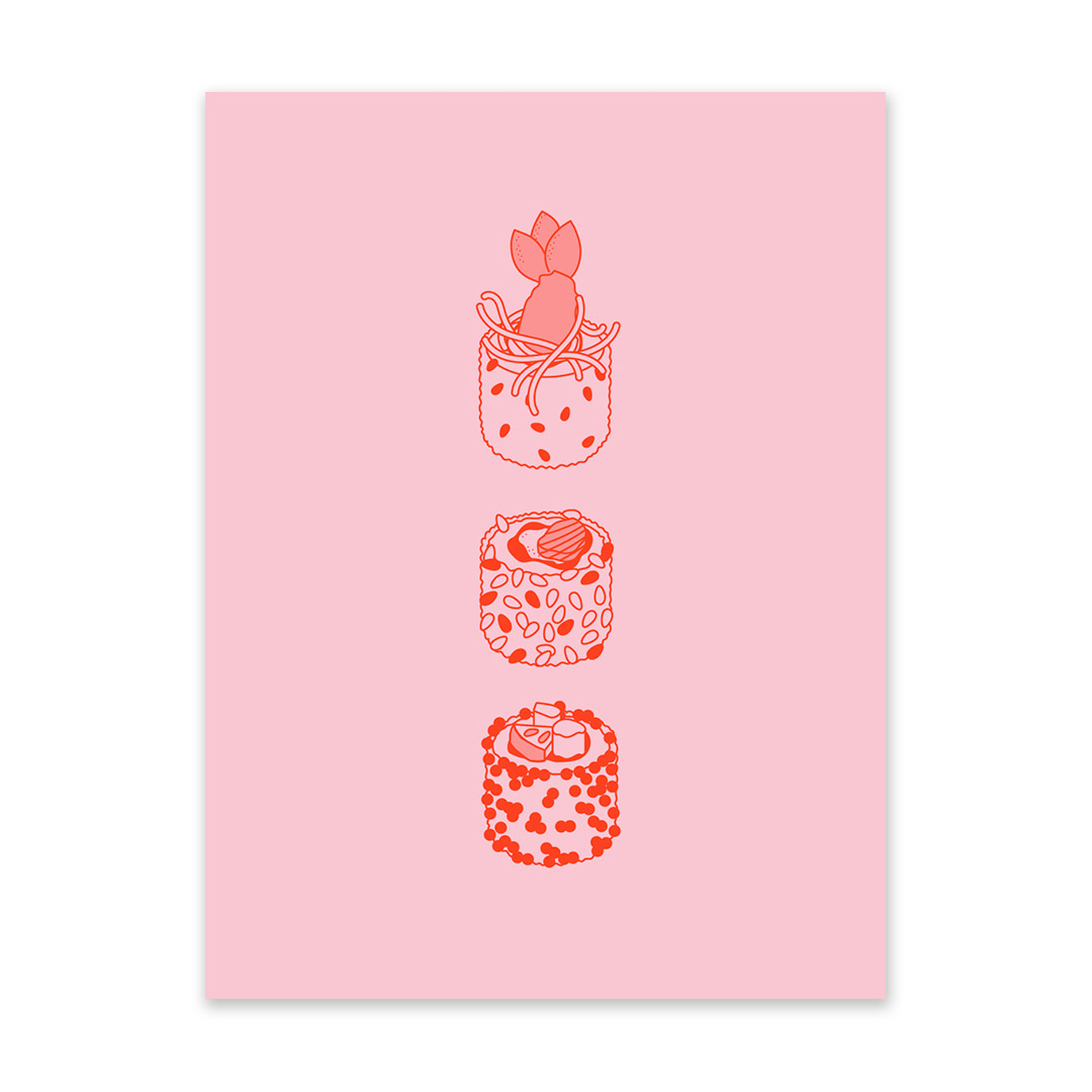 Pink and Red Sushi 2 Riso Print (6x8)
