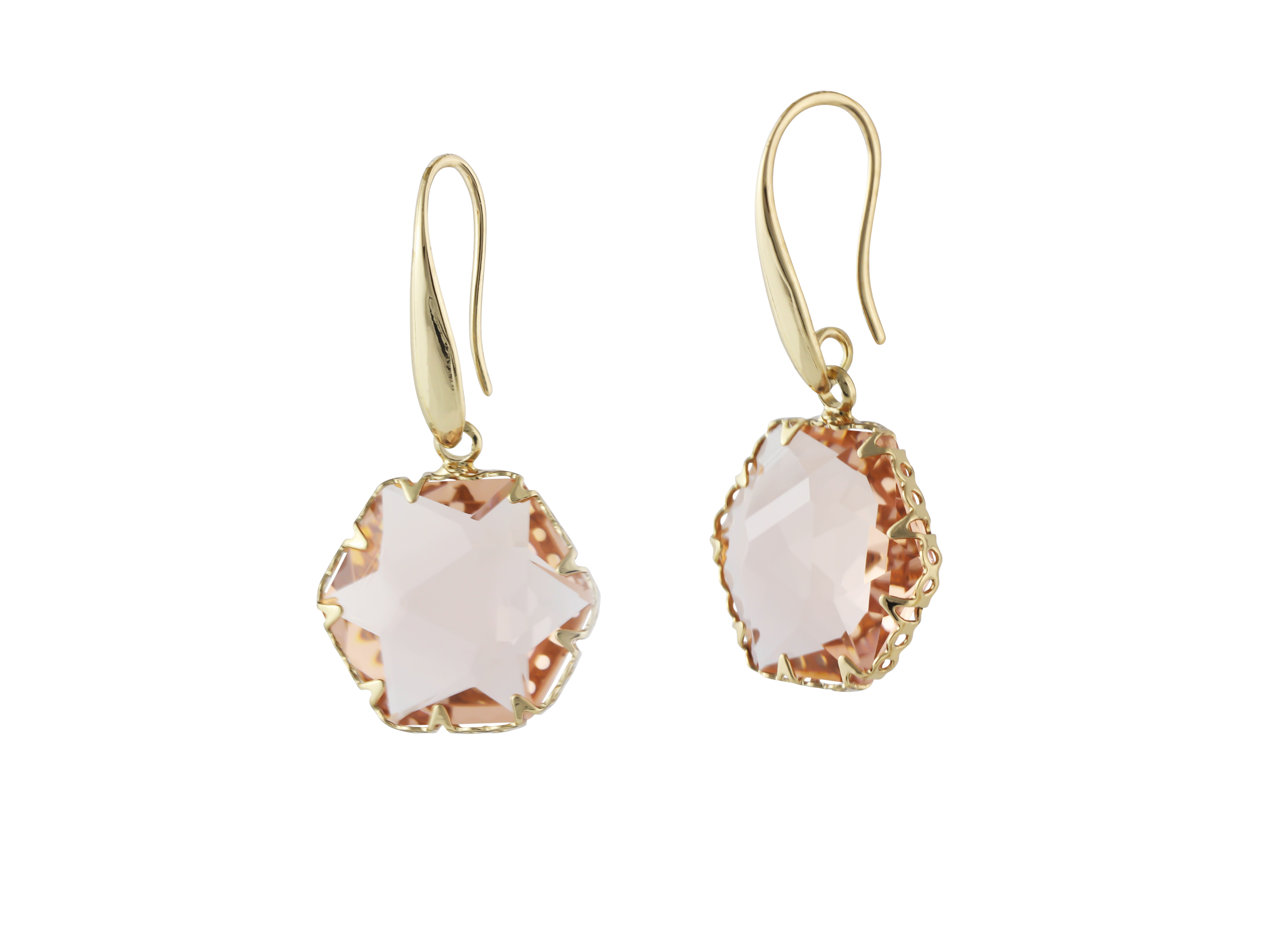 Gold/Pink Camilla Crystal Hexagon Earrings