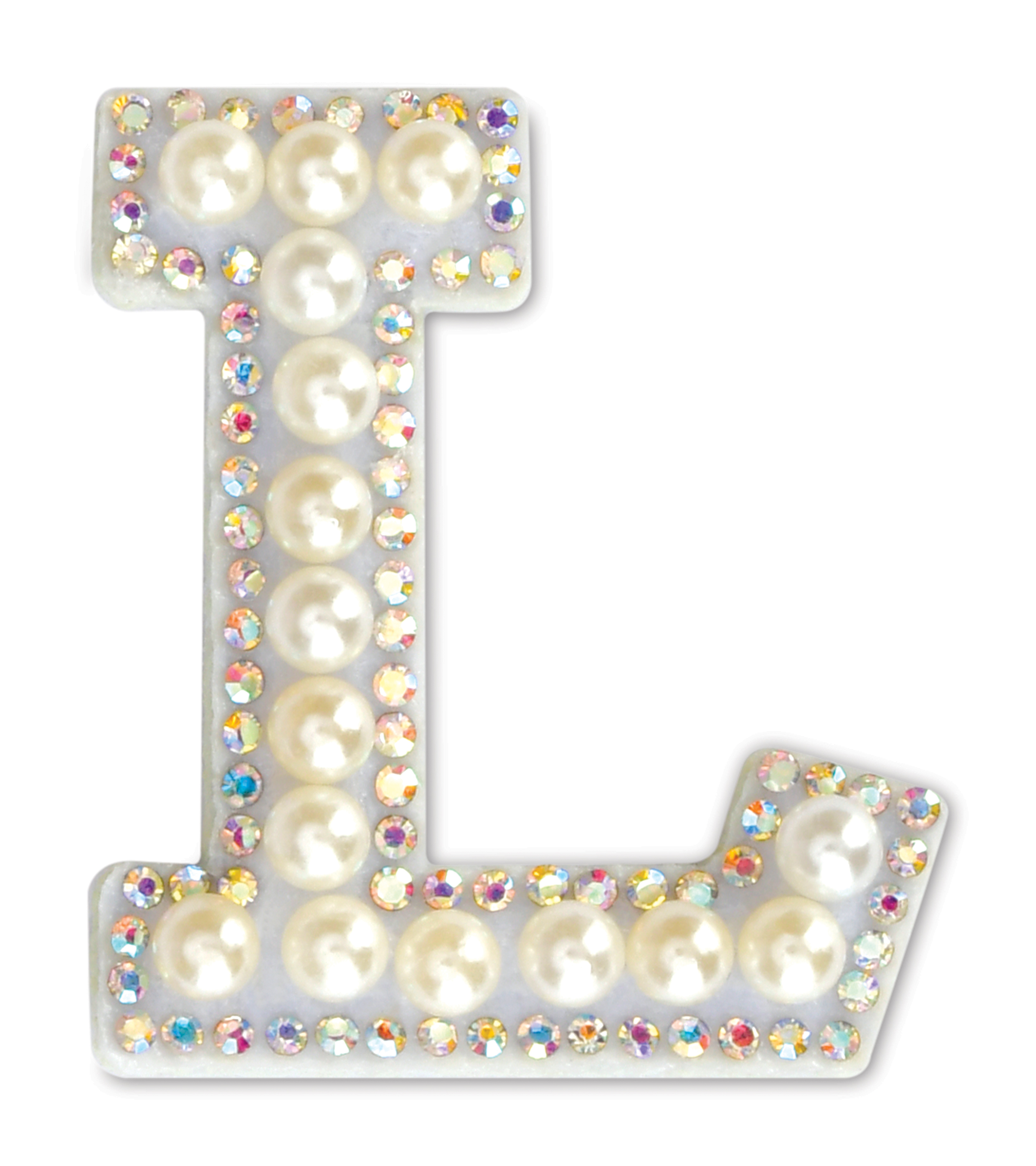 L Alphabet Pretty Pearl Bead Iron On Patch