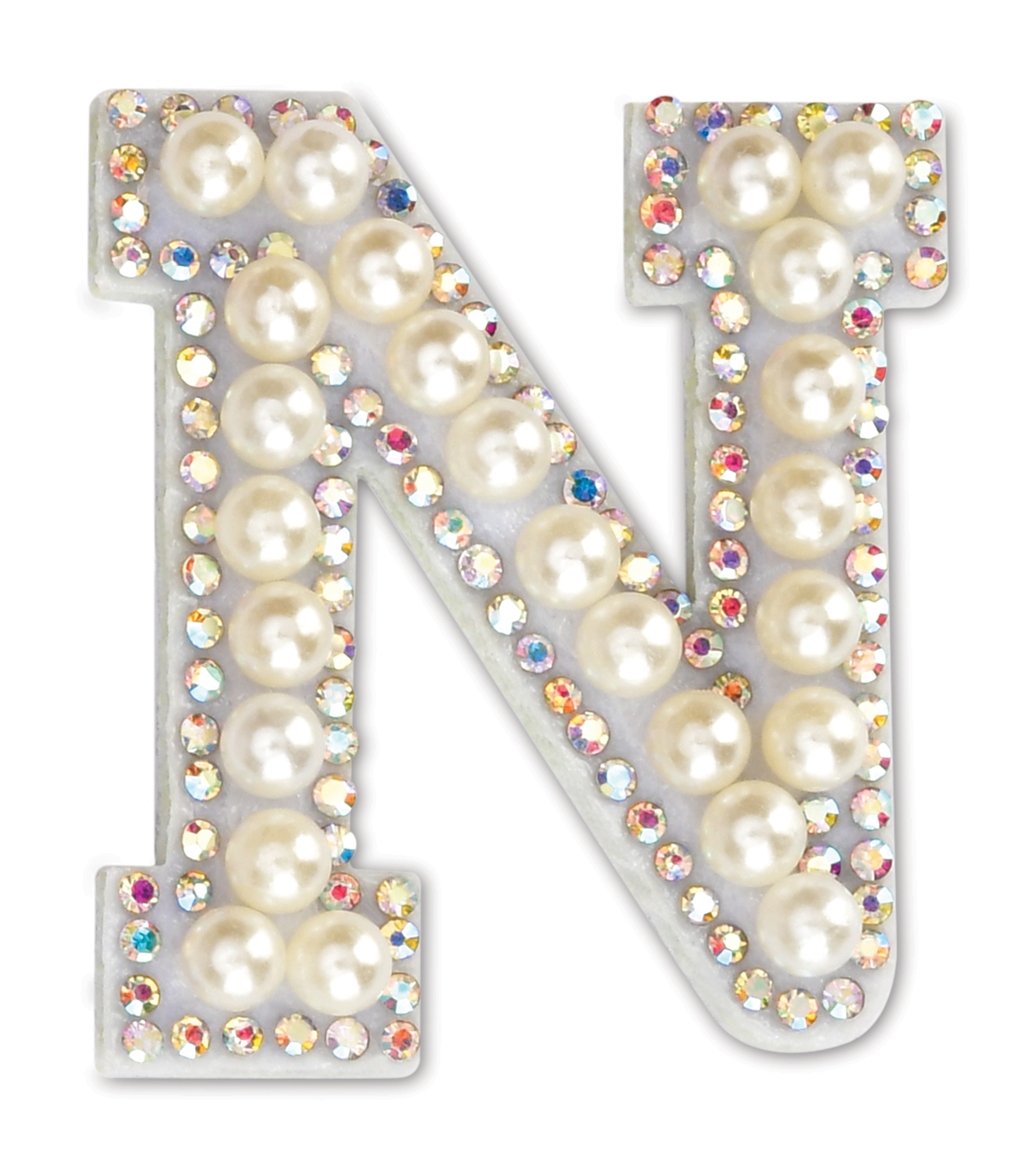 N Alphabet Pretty Pearl Bead Iron On Patch