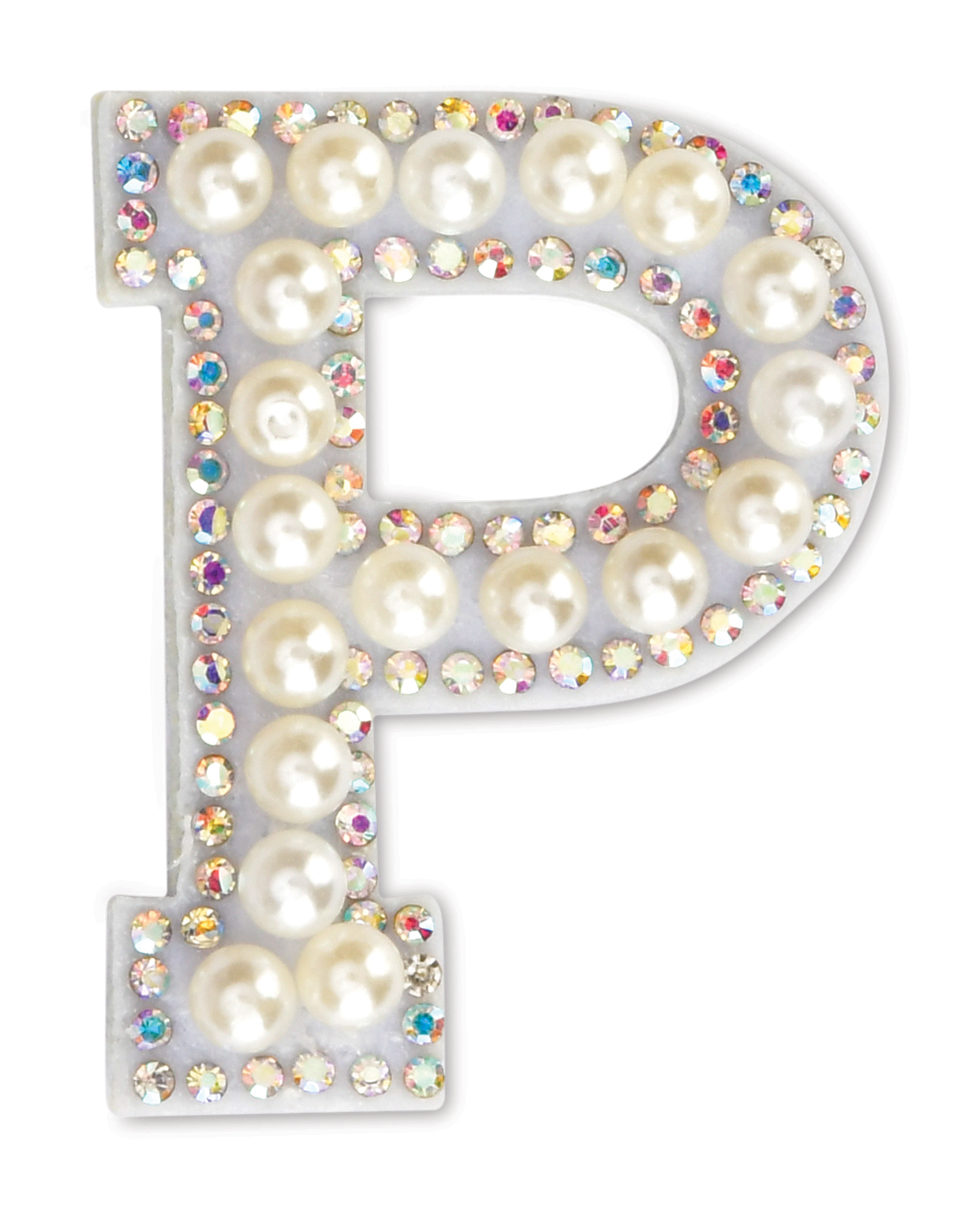 P Alphabet Pretty Pearl Bead Iron On Patch