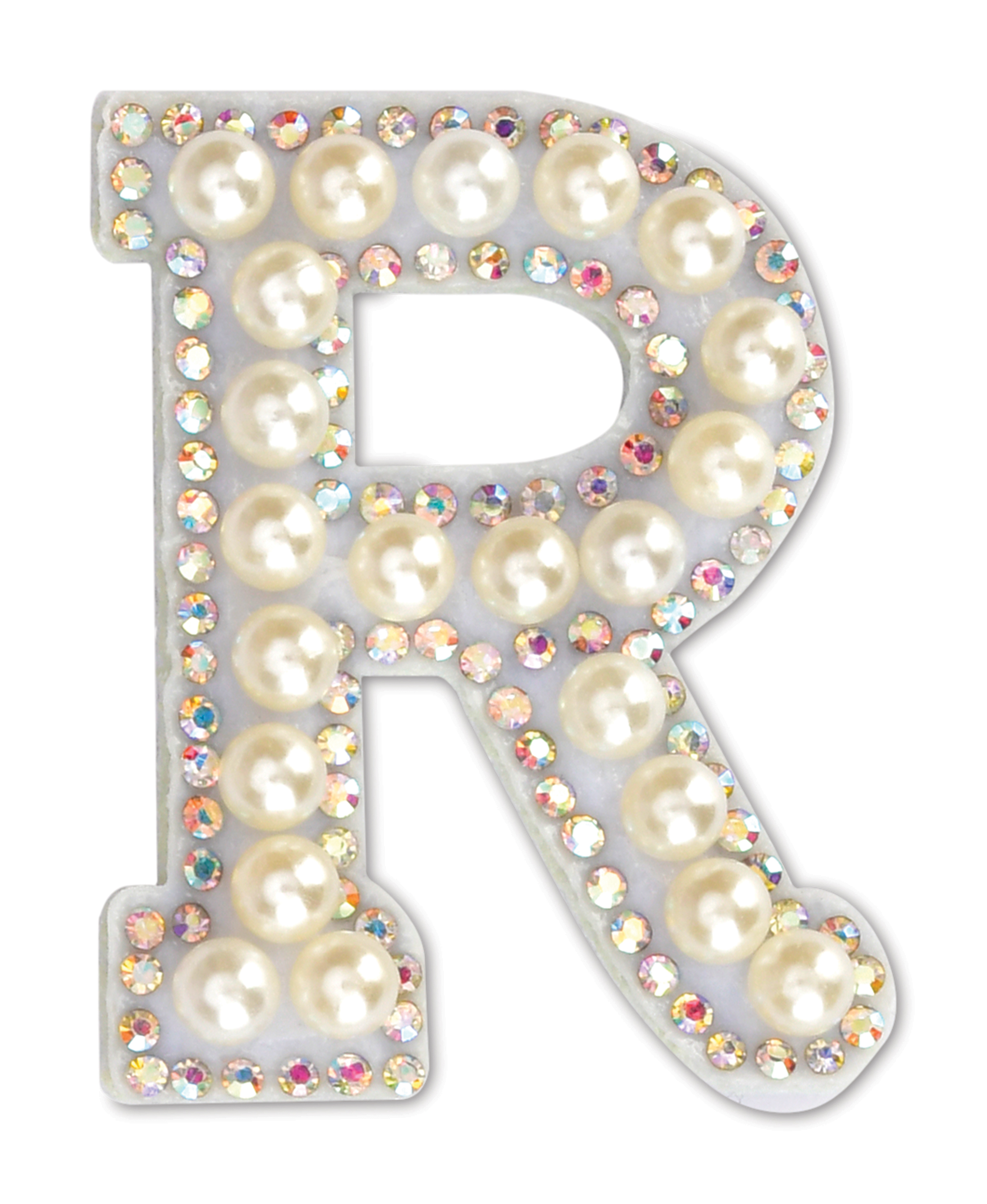 R Alphabet Pretty Pearl Bead Iron On Patch