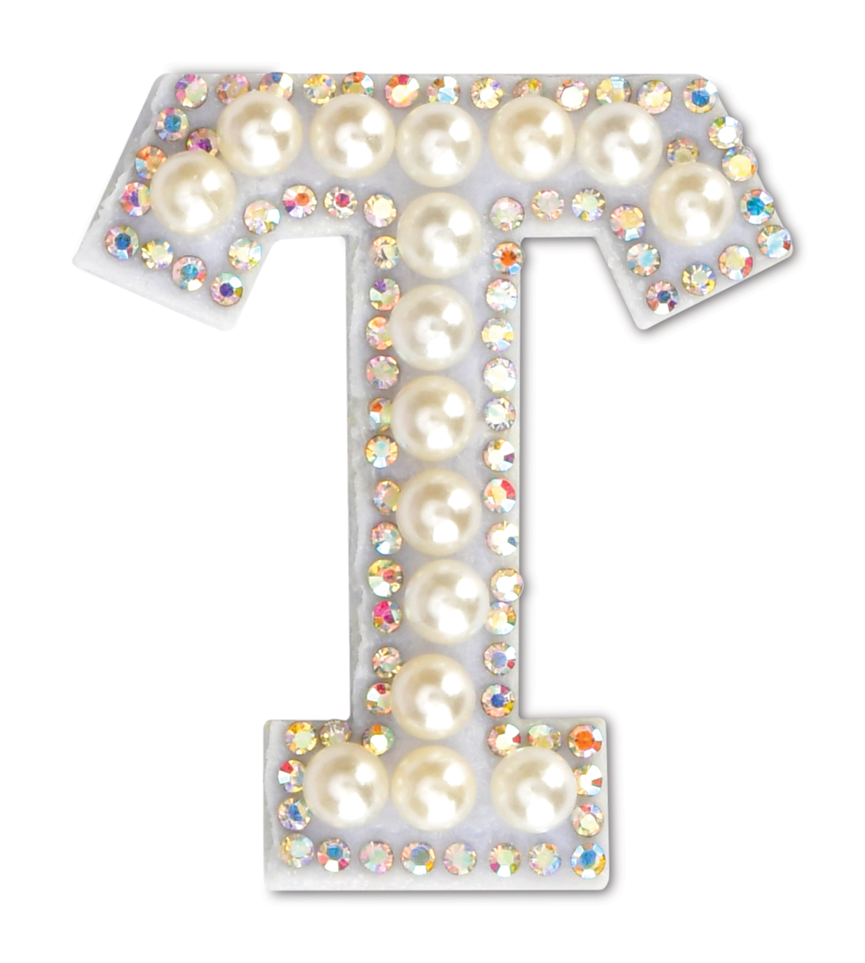 T Alphabet Pretty Pearl Bead Iron On Patch