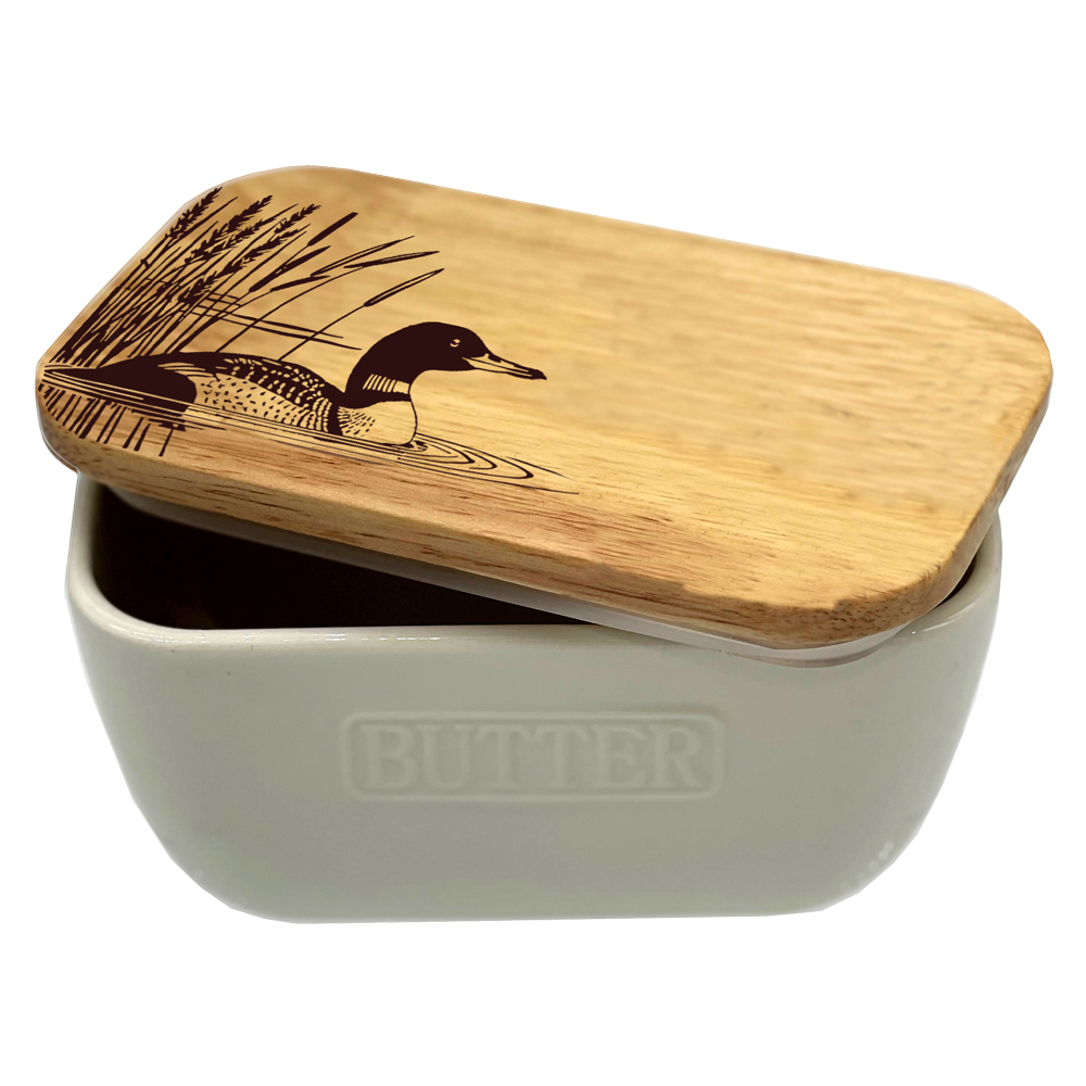 White Butter Dish - Loon Bird